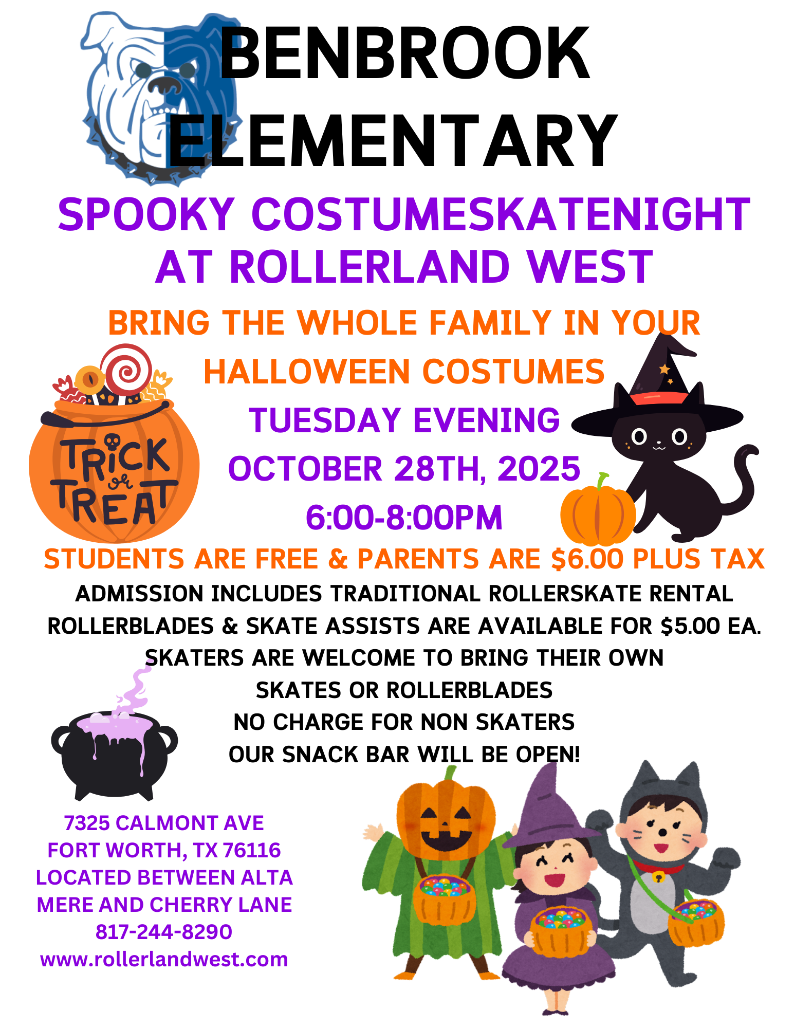Join us for another fun filled skate night at Rollerland west! Wear your costume and get ready to have some spoookishly good fun! Admission is free for students of BES!