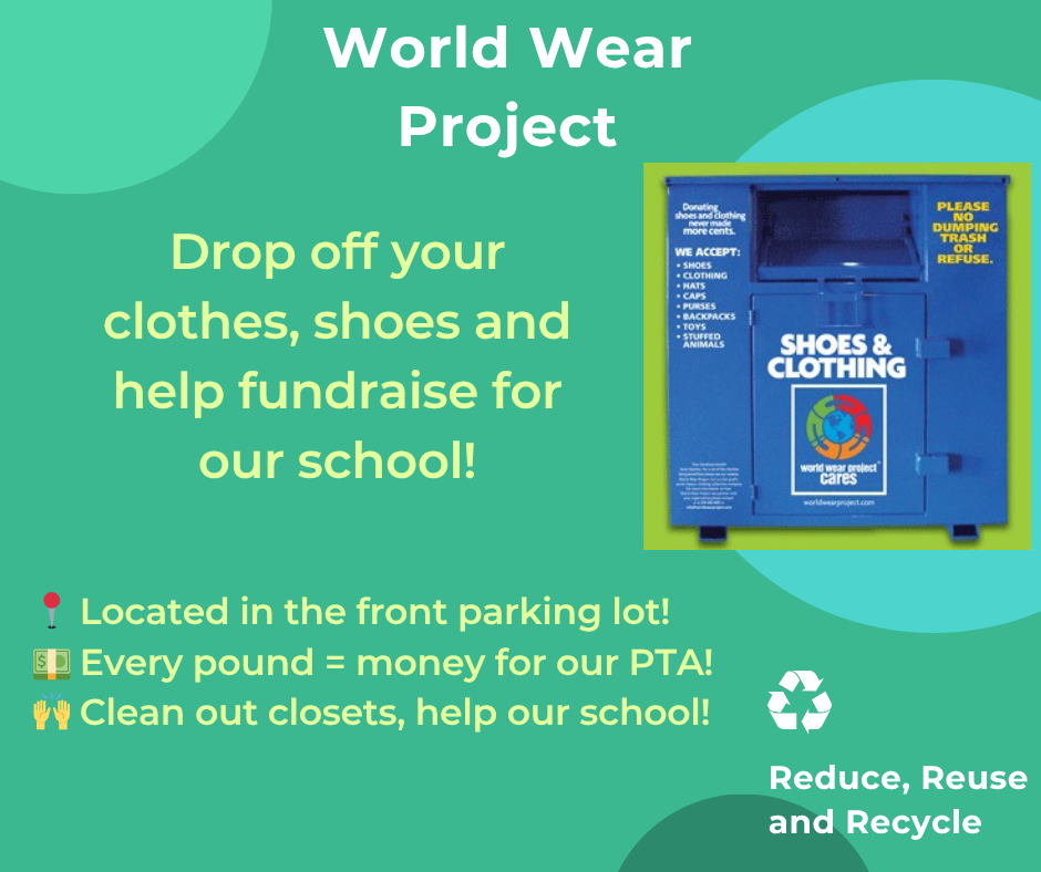 Have gently used clothes, shoes, or textiles? Drop them in the World Wear Project bin on campus!
